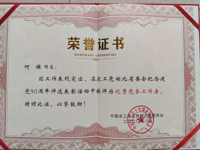 近日,在农工党庆祝建党90周年评选表彰大会上获悉,我校农工党委员会和多名党员荣获农工党中央和省委会表彰。其中,校农工党委员会荣获“农工党中央2020年度党史和理论工作先进组织”荣誉称号;校农工党朱书刚教授荣获农工党中央“先进个人”荣誉称号,尤明青教授荣获农工党省委会“优秀农工党党员”荣誉称号,何雄副教授荣获农工党省委会“优秀党务工作者”荣誉称号。
