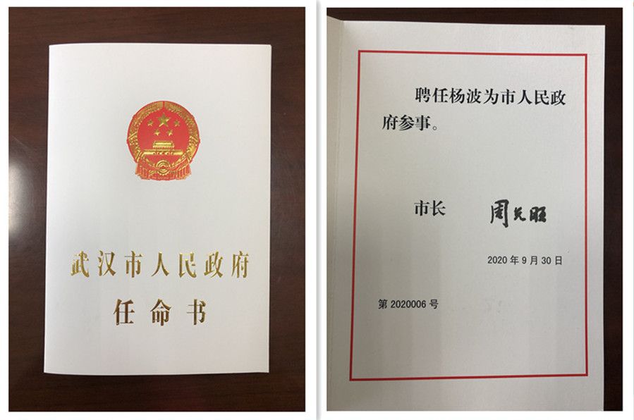 杨波感谢武汉市政府参事室对自己的信任和肯定,感谢学校和党委统战部多年来的关心和培养;表示很荣幸通过市政府参事这个平台,进一步发挥所学专长,认真做好参事履职工作,为武汉市经济社会发展贡献力量。