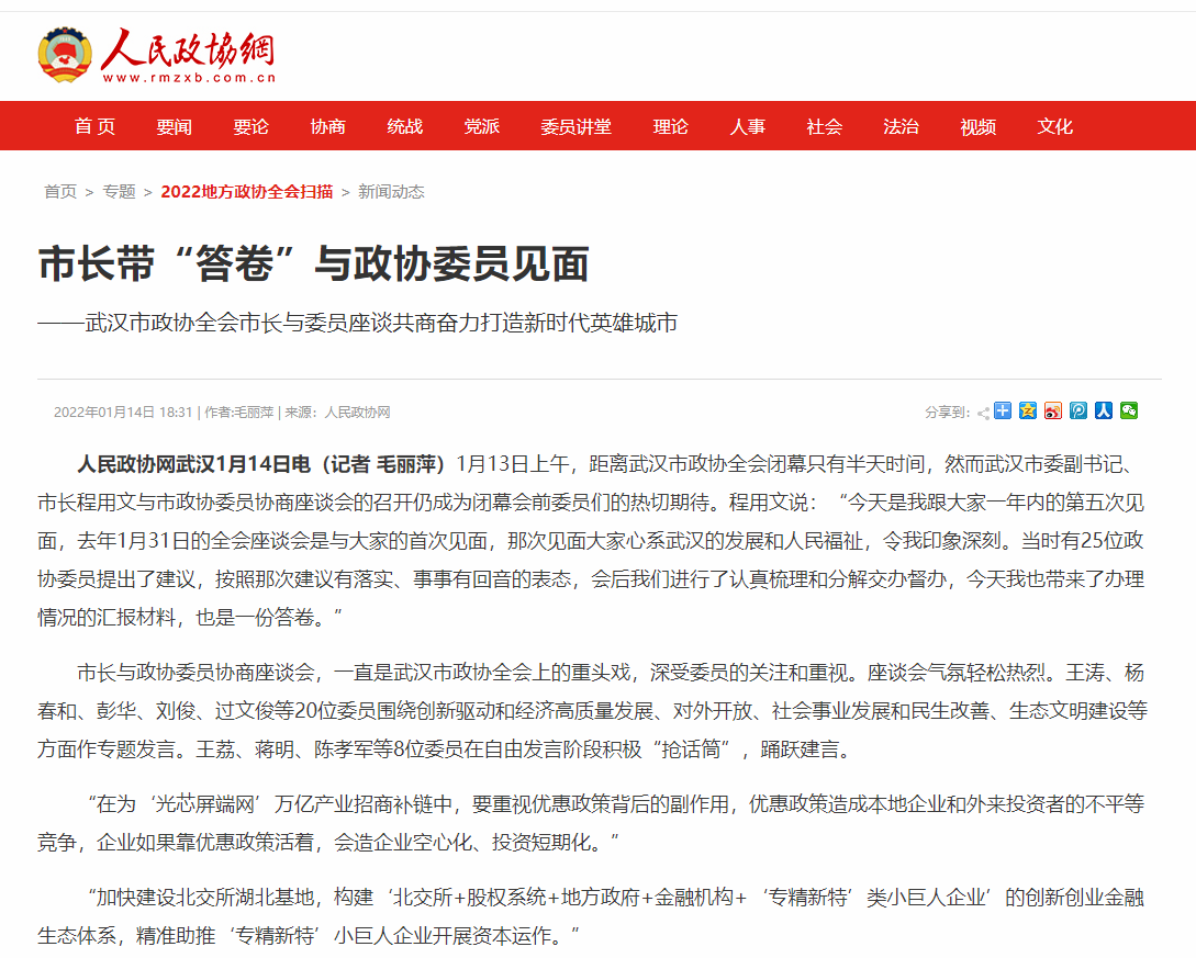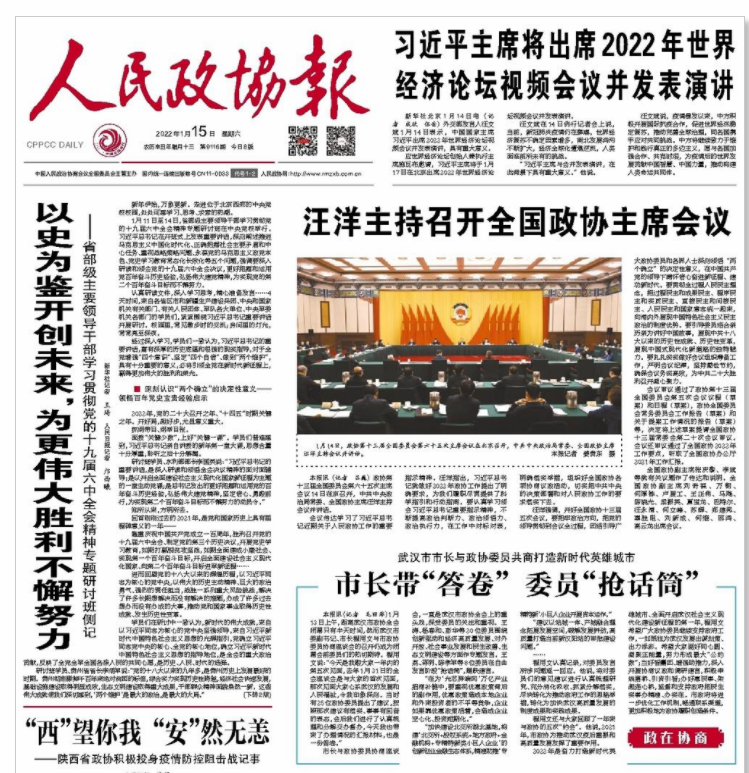 (根据《人民政协报》2022-01-15 第一版、《长江日报》2022-01-14 第一版、人民网2022-01-13、武汉广播电视台2022-01-13、人民政协网2022-01-14等媒体报道采编)