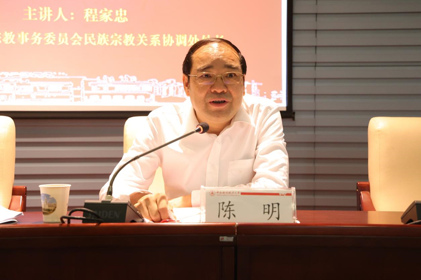 陈明在总结中充分肯定了此次讲座对学校开展好新时代民族工作的理论、政策和实践方面的指导意义,对学校今后的民族工作提出要求:一是要认真学习贯彻第五次中央民族工作会议精神和习近平总书记关于加强和改进民族工作的重要思想;二是各学院、各部门要履职尽责,通力合作,形成良好的民族工作机制;三是要按照高校开展民族团结进步创建要求抓好学校民族工作;四是要切实维护好校园安全稳定,迎接党的二十大胜利召开。
