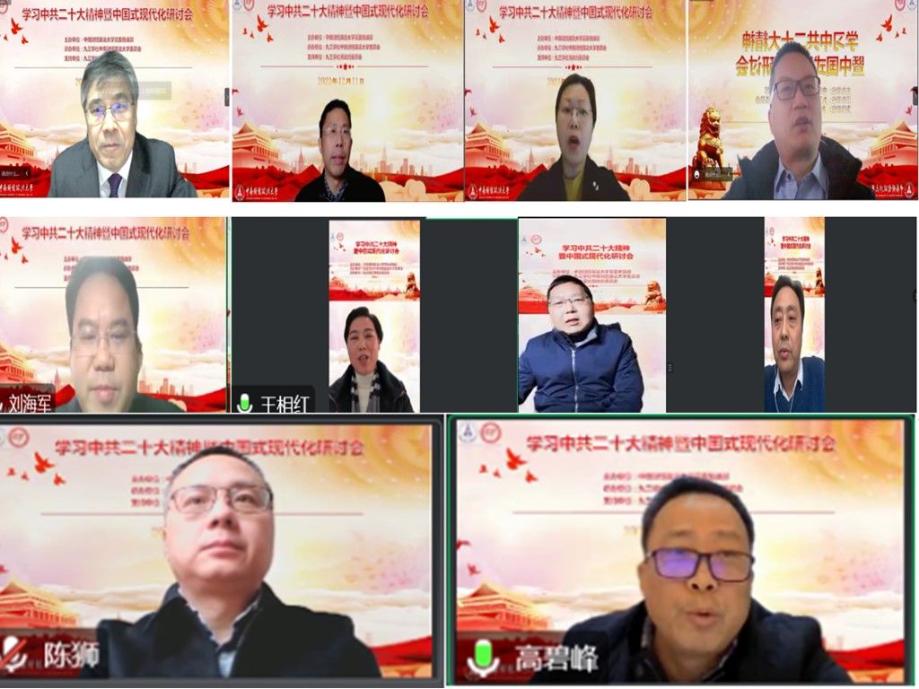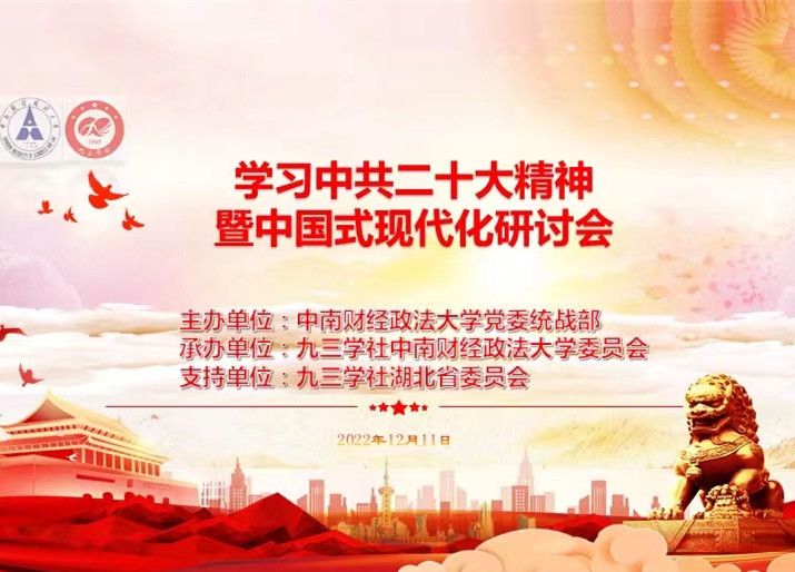 (通讯员 顾露露)2022年12月11日,由米兰电竞·(中国区)党委统战部主办、九三学社米兰电竞·(中国区)委员会承办、九三学社湖北省委大力支持的“学习党的二十大精神暨中国式现代化研讨会”在我校以线上方式成功举行。相关领域知名专家学者围绕二十大精神学习贯彻对“中国式现代化”的实现方向和路径进行了深入研讨。来自湖北省委统战部、湖北省社会主义学院、九三学社湖北大学委员会、全省九三学社基层组织、学校各民主党派成员近三百人参加了会议。