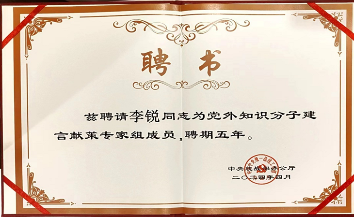 会上还举行了党外知识分子建言献策专家组聘任仪式。李锐教授被中央统战部聘为党外知识分子建言献策专家组成员。