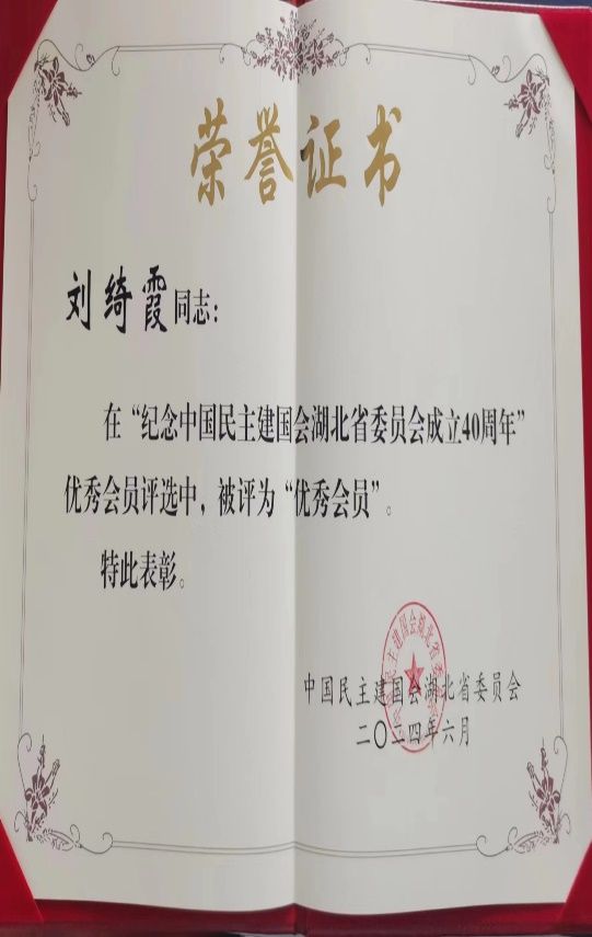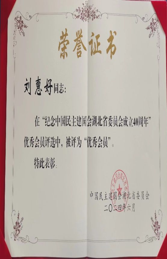 我校民建会员刘惠好、张志宏、刘绮霞在“纪念中国民主建国会湖北省委员会成立40周年”优秀会员评选中,被评为“优秀会员”。