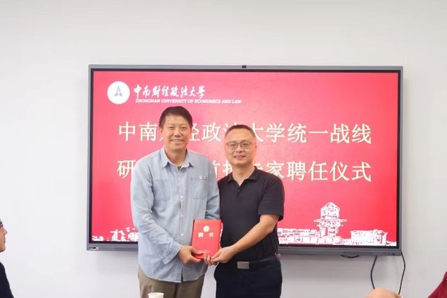 会议期间举行了学校统一战线研究中心首批智库专家聘任仪式,陈狮为王文贵等14名专家颁发聘书。