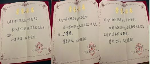 在集体表彰中,我校民建委员会获评2024年度省直先进基层组织、2024年度参政议政工作先进单位三等奖、2024年度反映社情民意信息工作先进单位三等奖。