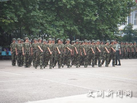 一进南园训练场就可以看到着装与其他新生有所不同的方阵正紧锣密鼓地训练着,这些方阵就是我校刑事司法学院的新生军训方队。据一位教官介绍,刑事司法学院的新生总共编排成三团,其中包括两个女生排和三个男生排,全都在南园旁的篮球场训练。