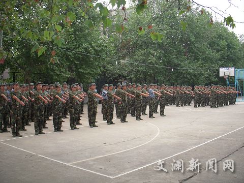 除了教官认真教导,军训场地上还总是能看到不少学生结成小对子,并排着走齐步,互相指正,互相帮助。休息时间,军训场上激昂的军歌此起彼伏,拉歌声和欢笑声也是一阵盖过一阵,不少学生还纷纷进行了才艺展示。