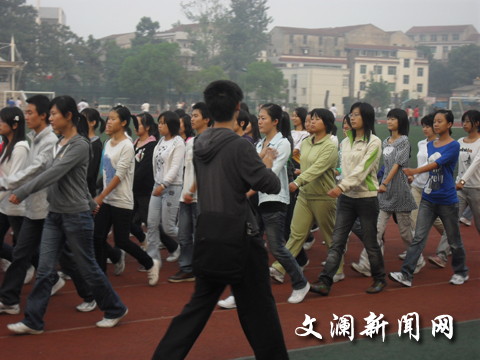 会计学院则在方阵的变换形式上下足了功夫,队形变化多样,独具匠心。那幅凝聚了会院师生心声得得对联也让人忍不住拍手叫好——“论剑中南,看会院千峰竞秀;献礼华诞,庆中华人民共和国成立六十周年”,横批为“花开中南,献礼华诞”。