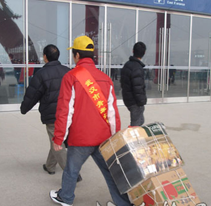 春节前夕,车站大多都是回家团聚过年的,很多旅客大包小包的带了很多年货,往往这个时候我们志愿者就派上大用场,男生女生齐上阵,不管多么笨重的行李志愿者们都主动帮忙。