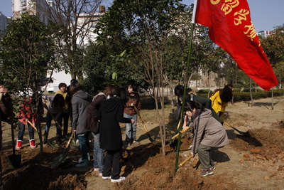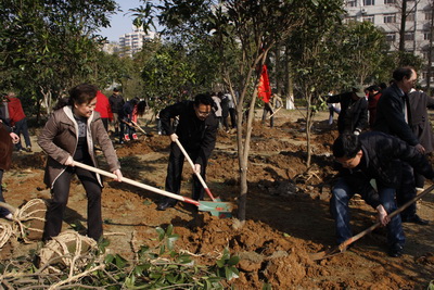 | 新闻网讯 (通讯员 余晓明 邓群)春回大地,万物复苏,在第三十一个植树节即将到来之际, 3月11日上午,继续教育学院院长兼党委书记谢进城教授带领全院职工、GAC预科班全体学生和脱产班学生党员100余人,在首义校区图书馆北侧种下了一棵棵充满希望的桂花树, 大家挥锹、挖坑、扶苗、培土、浇水,整个过程一丝不苟。为校园添绿,为首义校区增彩,饯行科学发展,弘扬生态文明,共建绿色校园是继续教育学院这次活动的主题。GAC国际大学预科的一位学生代表说,在出国留学前夕参加这次植树活动,我在种下树苗的同时,也在心灵上留下了美好的期望,今后,我无论走多远,都将长期关注学校首义校区的发展,与树木共成长,与时代共进步,绝不辜负学校的精心培养。 继续教育学院具有坚持每年开展植树活动的优良传统,谢进城院长说,与以往不同,今年的植树活动选择在了首义校区,不仅进一步营造了首义校区的优美环境,而且还为我校将首义校区打造成为全省一流的干部培训基地烘托了氛围,继续教育学院将在首义校区把这项活动长期坚持下去。 活动结束时,一片桂花林巧然诞生,师生们依然流连忘返,他们期待着今年这里会丹桂飘香,更期盼着来年首义校区的“新桂园”面积倍增,成为我校“继续教育园区”一道更加宜人的生态景观。
