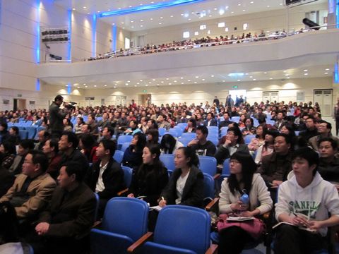 “我还是先给大家看一组照片。”叶教授通过多媒体向大家展示了两会期间他所拍摄的一组照片,照片涉及会议各个方面,上至会议期间温总理宣读政府工作报告、细微处则有会场的布置布局,叶教授通过他的照片,向大家展示了真实的两会。