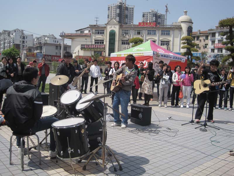 西南大旱同样牵动着校园里每个社团的心。“水滴活动”当天,3名云南籍男生组成的“随组”乐队用一把吉他,一把贝斯,一台架子鼓,奏响了义演的序普。他们翻唱了《情歌而已》以及动情演唱了自己的原创作品《少年往事》,吸引了众多的同学和路人驻足观看,与此同时,募捐活动也在如火如荼地进行。几首歌曲后,来自云南各州市的13名同学以手语的形式演绎了一曲《感恩的心》,整齐的动作,投入的神情,感染着在场的每一位观众。在活动结束后的采访中,记者了解到,“随组”乐队的成员们几乎都是第一次参加义演,他们纷纷表示虽然自己能力有限,但仍想用自己的方式,尽最大的努力为家乡歌唱,为家乡募集更多的善款。在谈到感受与收获时,他们觉得此次义演也在不同程度上给他们带来了新的心灵触动和创作灵感。此外,记者还通过工作人员了解到,截至活动结束时,善款总额已达5000元。而吉它协会的义演,无疑为本次募捐增色不少。