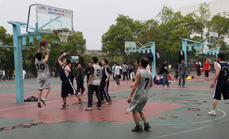 ![]() ![]() 4月15日下午,由校工会组织的“校2010年教职工男子篮球联赛”在五食堂旁的篮球场上全面展开:16支球队捉对厮杀,平日温文儒雅的教职工在球场上腾挪跳跃、投篮抢断,场面异常火爆,场边鼓声阵阵,气氛十分热烈。