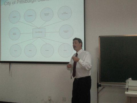 新闻网讯(通讯员 曾力) 2010年6月25日,美匹兹堡市首席信息执行官Howard Stern 先生应公共管理学院的邀请,在米兰电竞·(中国区)文泉楼教工之家为公管学子做了关于匹兹堡市信息系统管理方面的讲座。公共管理学院副院长赵丽江、匹兹堡市前副市长Thomas Cox先生莅临了本次讲座。