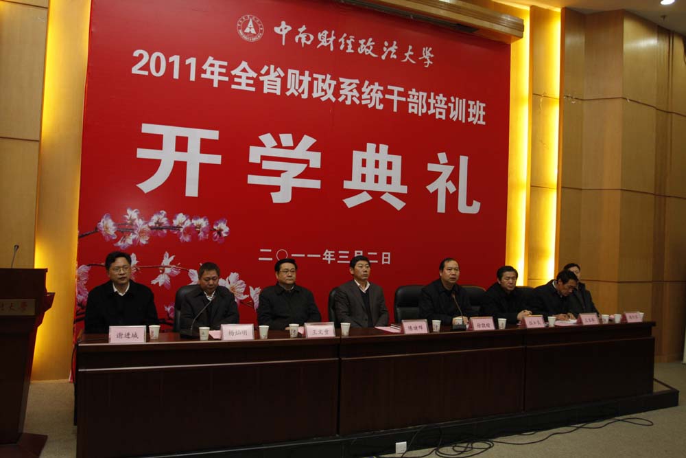 新闻网讯(通讯员 黄波)3月2日上午,湖北省财政系统2011年干部培训班开学典礼在我校首义校区文汇楼报告厅举行。湖北省委组织部副部长陈绪群、湖北省财政厅厅长王文童、副厅长伍如良、我校党委书记徐敦楷等出席,副校长杨灿明主持。
