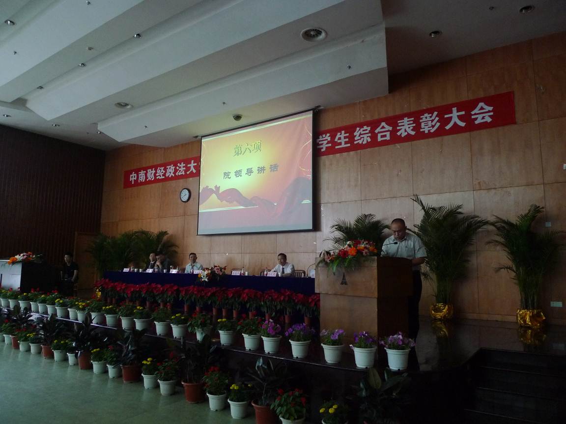 在观看了展现会计学院学生风采的视频短片之后,会计学院党委张学平副书记宣布大会正式开始,全体与会师生起立,齐唱国歌。 在雄壮的歌声后,校党委齐文远副书记讲话。齐书记对会计学院在人才培养方面取得的骄人成绩进行了充分肯定,并提出了两点殷切的希望:一是希望会计学院继续开拓进取,精益求精,进一步提高人才培养水平;二是希望会计学子做到胡锦涛总书记要求的“三个紧密结合”,提高综合素质,争做栋梁之材。最后,齐书记向会计学院全体师生深情呼吁:“站在新起点,致力新发展,实现新跨越,让我们紧紧携起手来,志存高远,脚踏实地,为实现我校建设‘高水平、有特色的人文社科类研究型大学’的‘十二五’教育发展规划愿景而努力奋斗!” 接下来,肖翠祥书记宣读表彰决定。齐文远副书记、王前哨副部长、汤湘希副院长和高文进副主任分别为在全国、全省、学校和学院范围各项活动与评比中获奖的学生代表颁奖,学生代表们郑重地接过沉甸甸的证书,全场掌声雷动。 之后,获奖代表发言。在学术科研方面取得突出成绩的硕士生李四海、2010年海峡两岸大学会计辩论赛冠军队、第四届“感动校园”十大青年学生(团队)之“盲人电影”志愿服务队、优秀班团集体代表“会三爱心团”、安永“明日商业领袖”案例分析大赛冠军队等依次做了成果展示,总结了自己的成功经验,表达了自己的体会,赢得了在场师生的阵阵掌声,引起了广泛共鸣。 最后,会计学院院长张龙平教授讲话。他对同学们提出两点希望:第一,希望同学们要树立作为会院学子的自豪感和荣誉感,始终保持积极向上的精神风貌,开拓进取,争创一流;第二,希望同学们一定要戒骄戒躁,始终保持谦虚谨慎的作风,时刻树立危机意识,力争百尺竿头,更进一步。张院长指出,成绩与荣誉都已属于过去,未来的我们任重而道远。希望同学们倍加珍惜难得的历史机遇,倍加珍惜无比宝贵的青春年华,牢牢把握人生正确航向,把个人成长成才融入祖国和人民的伟大事业之中,以实际行动创造无愧于人民、无愧于时代的业绩,以昂扬的斗志和饱满的热情,谱写壮丽的青春乐章。