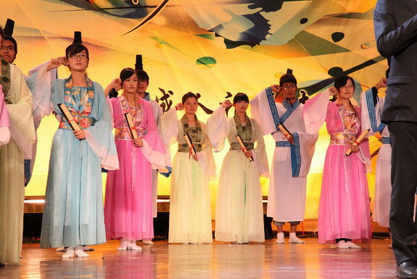 新闻网讯(通讯员 徐会超) “今天,我庄严宣誓:我已长大成人,我要肩负起成年的责任 ,用信心对自己负责用诚心对他人负责 ,用爱心对家庭负责 ,用热心对社会负责 ,用赤心对国家负责…… 勇敢,理智,谦和,宽容,坚强,诚信,做最好的自己,用90后的年轻活力,放飞梦想,,十八而志,青春万岁。” 此次活动最大的亮点在于将成人礼与新生才艺大赛相结合。为大学生中举行成人礼,之前在全国高校并不多见。普遍认为,中学可以为学生办成人礼,大学没有必要举行这样程式化的成人仪式。但经会计学院调研及“两访两创”访谈显示,现在的大学新生大多是1991—1993年出生,学生进入了纯90后时代。“这一代年轻人多数在进入大学之前没有真正离开父母单独生活过,无论其年龄有没有超过18岁,都像没有长大的‘孩子’,进入大学他们才逐渐成为真正意义上的‘成人’。”所以学院决定以着汉服、由师长加戴成人冕的方式,让学生更深切地感受到对自己“成人”身份的认同感和责任感,加强对中国传统文化的深度认同与传承。这也是会计学院培养学生综合素质、提高人才培养质量的体现和缩影。 会计学院党委肖翠祥书记,张学平副书记,院办 别开生面的成人礼吸引了长江商报、武汉晨报、湖北电视台、楚天都市报、楚天金报、武汉晚报、长江日报、校报、文澜新闻网等多家媒体关注,多名记者前来采稿,我校各部门、各学院的其他领导、老师、同学及众多2011级新生家长也到场观看了新生们的风采。