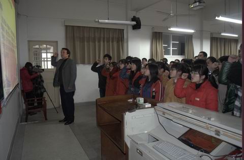 在庄严的《国际歌》声中,新闻与文化传播学院“喜迎十八大,争创新业绩”主题实践活动启动仪式暨新老党员宣誓和重温誓词活动圆满结束。