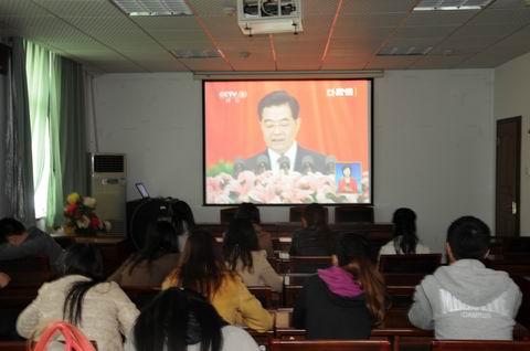 新闻网讯(通讯员 张蕾蕾 王楚云 刘拯华)11月8日,中国共产党第十八次全国代表大会于上午9时在北京人民大会堂开幕。胡锦涛总书记代表中央第十七届委员会向大会作了题为《坚定不移沿着中国特色社会主义道路前进 为全面建成小康社会而奋斗》的报告。为加强研究生党员教育,马克思主义学院专门组织2011级、2012级研究生党员观看了开幕式直播。