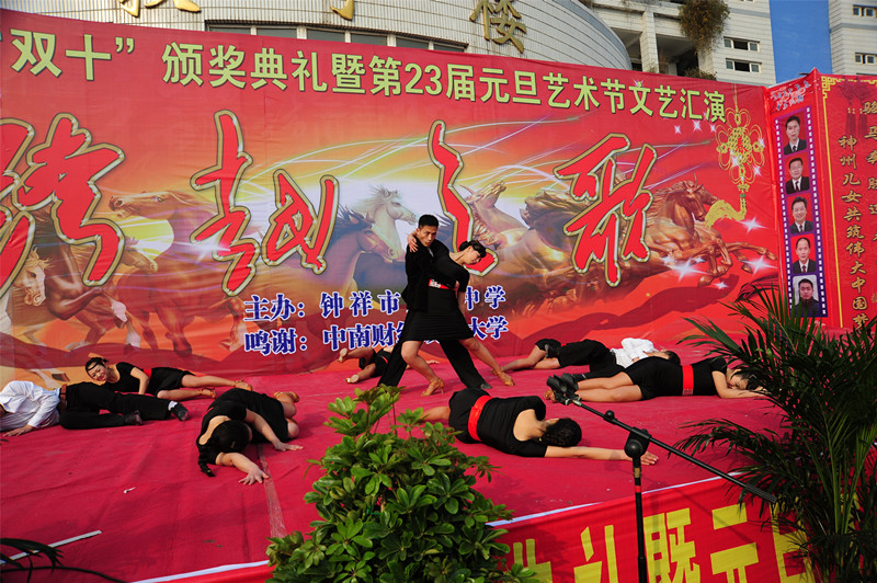 新闻网讯(通讯员 周尧)12月29日下午,钟祥一中第23届元旦艺术节文艺汇演在该校新校区国旗广场举行。本次活动由我校学工部牵头,校团委艺术团派出5个节目参加了演出,旨在创新招生宣传形式,展现我校学子风采。我校学工部部长雷照荣携招生办公室和校团委相关老师出席了演出,钟祥一中全体师生及学生家长等5000余人观看了演出。
