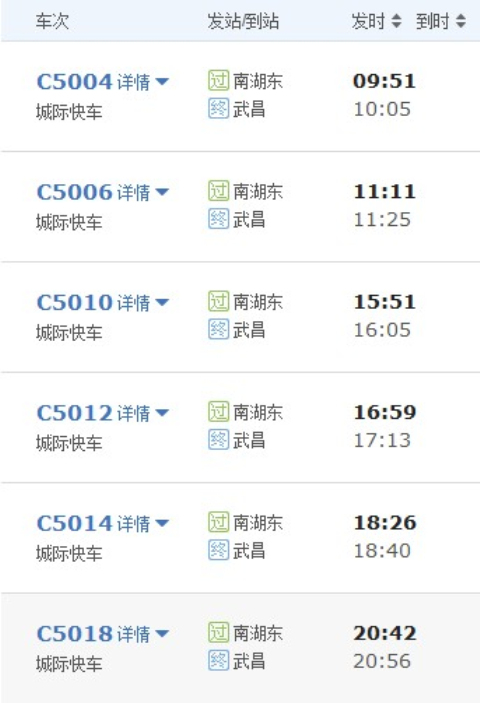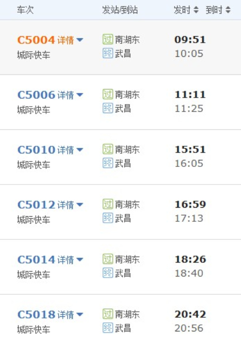 武昌火车站至南湖东站二等座车票为5元,一等座为6元。