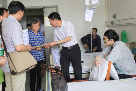 新闻网讯(通讯员 魏珂祎 朱城壅) 5月23日上午11时,工商管理学院院长陈池波、院党委副书记吕宗瑛、市场营销教研室三位老师以及学办相关老师、同学一行七人赴中南医院看望重病学子辛帅,为他及家人送去了关怀与慰问。