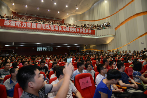 新闻网讯(学生记者 王园园 马嘉骏) 6月9日下午2点,我校校友、著名企业家、格力集团董事长兼总裁董明珠应邀参加我校MBA创办20周年庆典大型系列讲座,在艺体音乐厅与近千名来自校内外的同学、校友一起,畅谈“格力经营之道”。副校长陈小君莅临现场并致辞,校友会、工商管理学院等单位负责人参加此次活动。