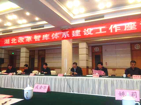 新闻网讯(通讯员 覃津津) 10月31日上午,湖北改革智库体系建设工作座谈会在东湖宾馆召开,我校副校长、湖北深化改革发展研究院副院长姚莉教授,城乡社区社会管理湖北省协同创新中心主任、湖北社会体制改革智库负责人赵曼教授参加会议。会上,赵曼和我校社科院副院长汪锋代表我校两个智库分别作了发言。