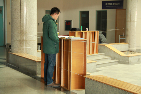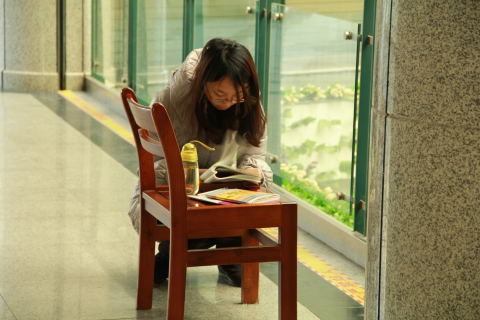 来自法学院的唐涵选择站在图书馆一楼走廊里放置的旧木架旁复习。为了考上本校中南大的法学研究生,他准备了四个月。当问及为何要站着时,他瞪圆了眼睛回答:“坐着完全不想背书啊!只能站着……”