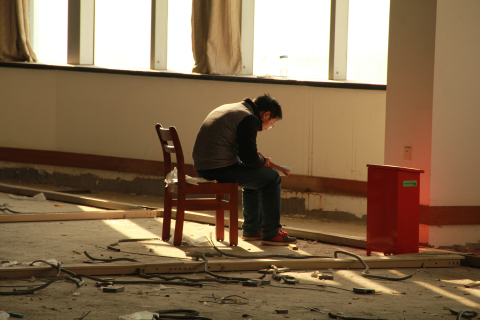 来自法学院的邱丽与焦松,他们共同的复习基地是等待重建的图书馆四楼原电子阅览室(一)。拍摄之时,他们都正在大声地背诵着复习资料。焦松表示,他们都比较投入,所以不会觉得对方的声音是对自己的干扰。
