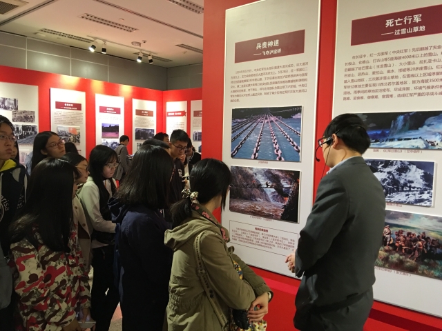 此次展览共展出了200余幅图片、30余件实物(部分为仿真件)、60余本图书,回顾了中共工农红军从被迫战略转移、浴血奋战,到遵义会议实现历史转折、突出重围,在陕北建立新的革命根据地的艰辛历程,展现了红军气壮山河的长征精神。老师和学生代表久久驻足、倾听讲解,仔细查看珍贵的长征历史文物和历史文献图片,缅怀革命先烈,重温长征精神。在将近半个小时的讲解中,师生全神贯注,深刻地体会到长征的艰难险阻和荡气回肠。