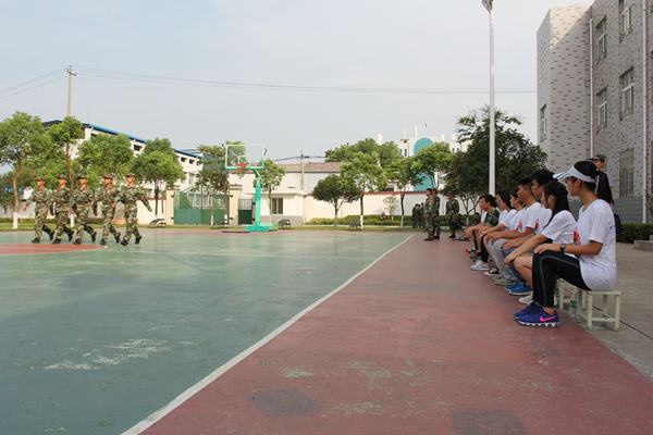 和洪山区看守所驻地武警中队联系过之后,在不影响部队正常操练的情况下,第一次进军营的实践顺利展开。学生们被安排和武警一起进行白天的操课,观看武警为大家精心准备的军事科目表演,学习棍术和武警擒敌拳,参观了部队内务和荣誉室。整整一周,学生和武警同吃同练,真实、全面地了解军人的生活。