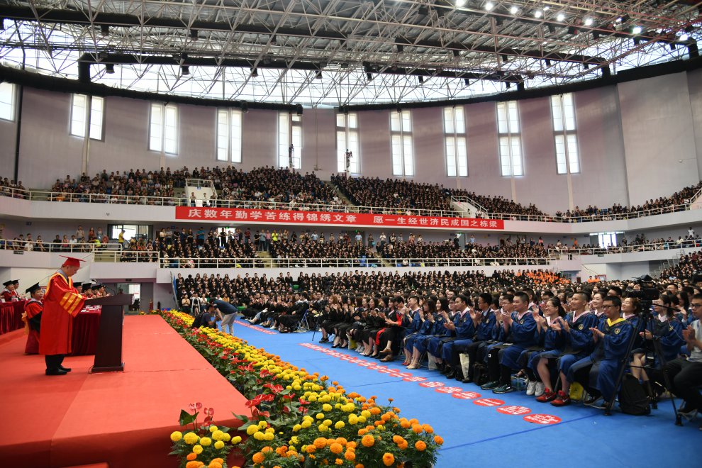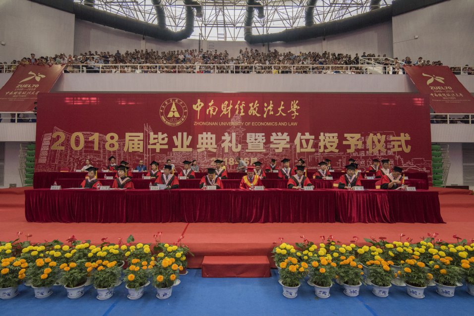 6月,南湖校区的艺体中心是毕业生难以忘怀的地方,因为这里留下了他们最珍贵的毕业时刻。今天上午,近8000名2018届毕业生聚在这里参加独属于他们的毕业典礼。校党委书记栾永玉教授,校学位评定委员会主席、校长杨灿明教授,校党委副书记王文贵教授,副校长姚莉教授,副校长陈明教授,副校长邹进文教授,校长助理邹秉国教授以及校学位评定委员会委员、教师代表、校友代表、毕业生和在校生代表在主席台就坐。典礼由党委副书记、纪委书记万清祥教授主持。