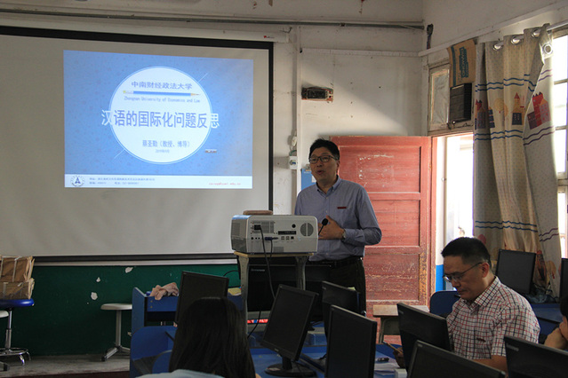 启动仪式后,推普扶贫活动分不同会场同时进行。在学术报告环节,国家级普通话测试员、我校外国语学院院长蔡圣勤教授为麦市镇中心完小的老师们讲授《汉语的国际化问题反思》。在师生朗诵环节活动中,学校推广普通话宣传员充满感情地朗读了《中国话》等优秀诗歌,省级普通话测试员刘淑君老师和中心完小班主任黄燕合作朗诵《永远的守巢人》,推广普通话宣传员和小学生联合表演了诗朗诵,国家级普通话测试员罗晓静教授做了现场点评指导。在讲授书法课程活动中,学校青云社成员、我校在读博士周子钦同学向五年级学生讲授了汉字的起源、汉字的结构等书法课程内容,并吸引了众多老师安静地旁听。在推普+扶贫调查环节,省级普通话测试员甘勇老师和柳凌之老师对当地教师及周边村民的普通话使用情况和学习需求进行了调查了解,以便后期继续开展推普扶贫工作。