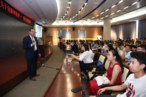 “我们希望可以通过这三个方面的努力,去培养人才,让他们去创造新奇的想法,并且将这些想法付诸于实践。但是这可能还不够,斯坦福大学有了新的路径,那就是创业精神,我认为这是可以让想法变为现实的关键所在。”保罗·马卡表示。主题报告后,现场师生就创业课程、设计思维模型、创新创业实践等问题与保罗·马卡进行了讨论和交流。