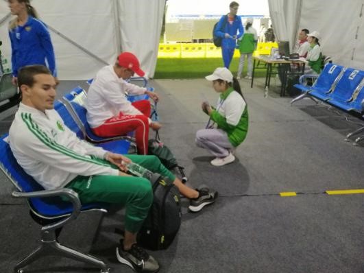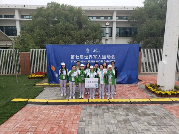 今年10月神州大地洋溢着祖国母亲生日的节日气氛,而作为即将在两周后进入到祖国另一件盛事“第七届世界军人运动会”志愿服务的一员,更多的是期待和紧张。2019年10月22日第一场田径比赛在武汉五环体育中心拉开帷幕。她们这场特别的志愿服务就开始了。杨秋云说:“作为运动员第一检录处的志愿者,没有赛场志愿者的热闹气氛,也没有赛后志愿者与运动员交流的机会,而我们有的是把好比赛的第一关,到如今都清晰的记得检录处老师的那句‘你们的每一个小细节都可能关系到一个冠军的诞生!’”