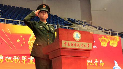 2019年4月25日,武汉市以“携笔从戎勇担强军重任,绿色军营书写绚烂青春”为主题的高校征兵宣传活动在我校艺体中心举行。包阳阳同志作为优秀大学生军官(士兵)代表在征兵大会上谈军旅生涯体会。包阳阳同志在大会上表示,他曾在学校国旗护卫队服役,带给了自己许多宝贵的人生财富,自己怀揣着报效祖国的军旅梦想,在毕业后毅然选择去部队参军。