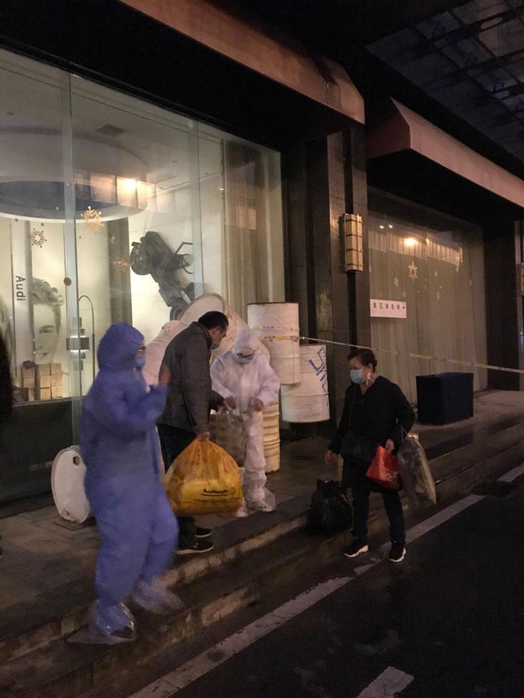 李育娟(左三)等第一批医护人员奔赴隔离点