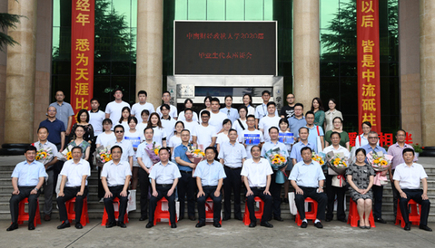 座谈会末,全体校领导向毕业生代表赠送毕业典礼学位授予仪式的照片,毕业生代表向全体校领导敬献鲜花,表达对母校的敬爱与感谢。最后全体校领导与毕业生代表合影留念。