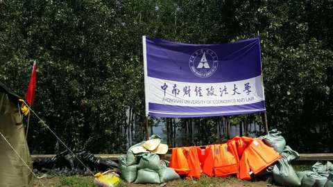 受降雨影响,长江发生了自1954年以来第二次全流域大洪水。在武汉市的20万抗洪大军中,武汉地区数十所高校师生们组成的队伍使千里长堤抗洪图更富生机。在省船厂几百米的大堤上,中南财经大学的旗帜高高飘扬了40天。