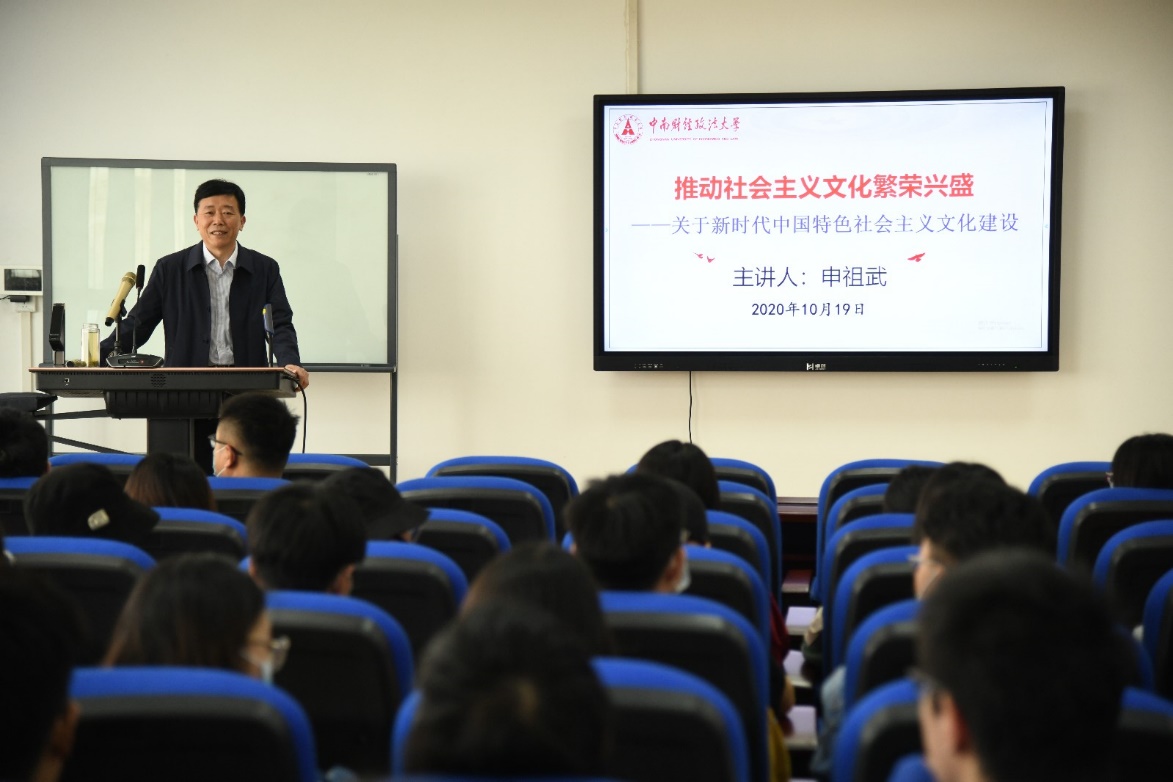 新闻网讯(通讯员 刘千惠 余利)10月19日下午,校党委常委、副校长申祖武在文澜学院教室,就《推动社会主义文化繁荣兴盛》这一主题开展专题思政课讲座。