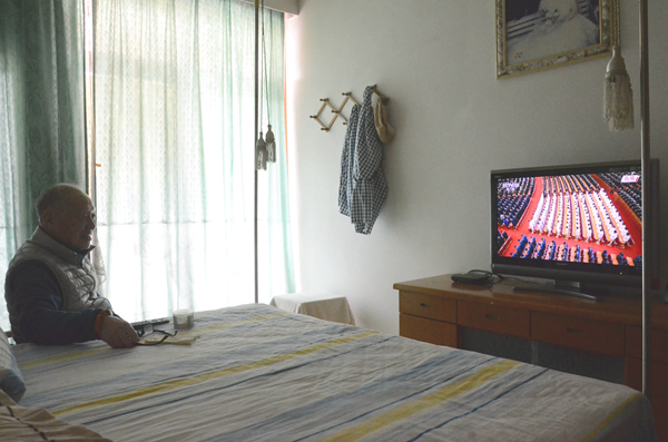 10月23日上午10时,抗美援朝志愿军老兵郑昌济准时守在电视机前观看纪念中国人民志愿军抗美援朝出国作战70周年大会,在听到习近平总书记讲“现在中国人民已经组织起来了,是惹不得的。如果惹翻了,是不好办的”这一句话时,郑老开心地笑了起来,他说道:“那个时候我才18岁。”