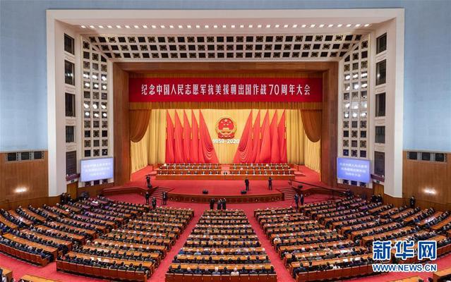 10月23日上午,纪念中国人民志愿军抗美援朝出国作战70周年大会在北京人民大会堂隆重举行。70年前,为保家卫国,中国人民志愿军跨过鸭绿江,与强敌进行了艰苦卓绝的浴血奋战。经此一战,侵略者陈兵国门的图谋被粉碎,新中国从此站稳了脚跟;经此一战,中国人民不畏强暴的钢铁意志震动世界,全世界对中国刮目相看;经此一战,人民军队愈战愈勇、越打越强,和平发展成为不可阻挡的历史潮流。