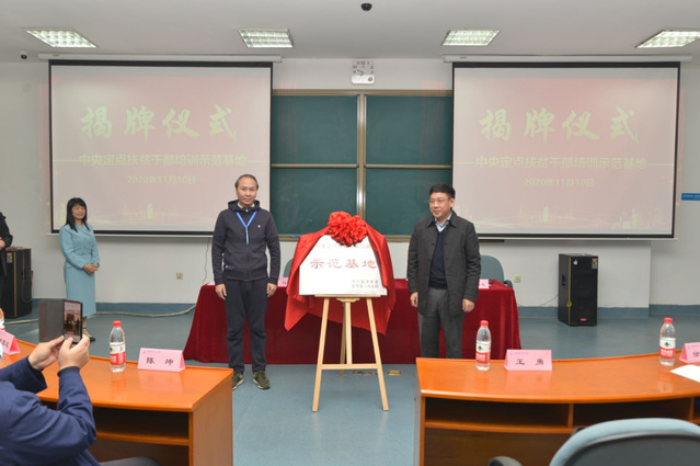 随后,王勇代表盐津县党委和政府在学校正式挂牌“中央定点扶贫干部培训示范基地”,刘仁山和王勇共同揭牌。本次研修班为期五天,围绕提升领导能力、增强法治思维、宏观政策解析和生态健康产业发展路径等课程进行专题学习,并到高端制造业和新农村建设示范点等地进行现场教学,综合运用讲授式、案例式、现场体验式等教学方法,充分发挥学校的智库作用和专业优势,为创新驱动乡村振兴发展提供智力支持。