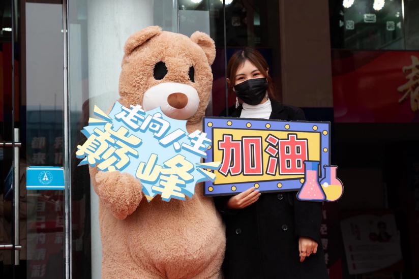 网红“小熊保安”最近又出没考研教室门外,拥抱很多走出考场的学生。