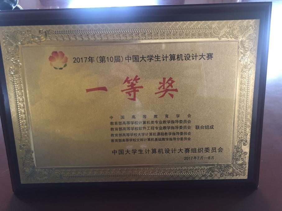 图1 2017年获中国大学生计算机设计大赛一等奖