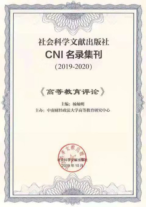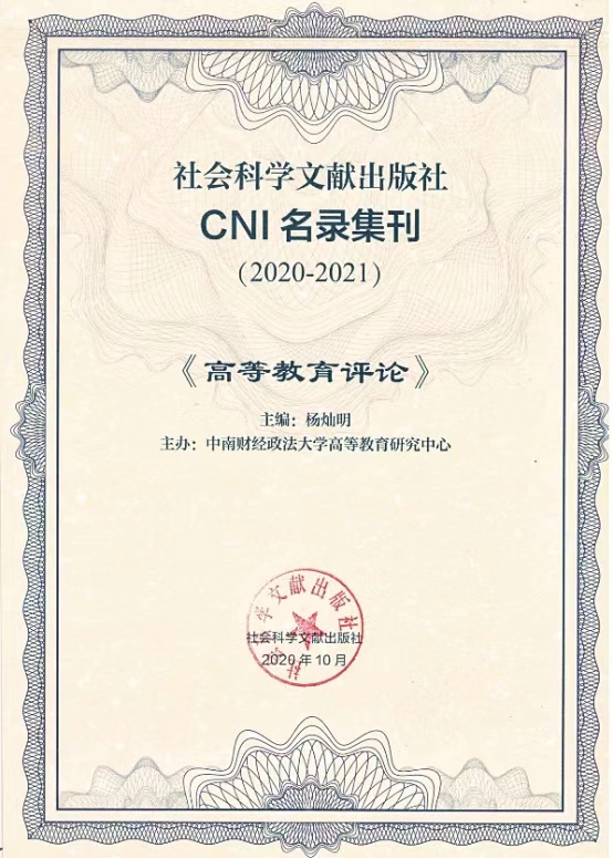 近年,《高等教育评论》连续荣获社会科学文献出版社推出的首届CNI名录集刊(2019-2020)、第二届名录集刊(2020-2021)。