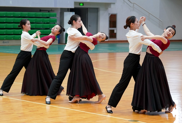 新闻网讯(通讯员 刘昊 摄影 曹佳曦)在庆祝中国共产党成立100周年的节点,在全党上下、全校上下掀起党史学习教育热潮之际,5月27日由学校体育运动委员会主办、体育部承办的“学党史、强信念、跟党走”学生操舞类大赛在南湖校区艺体中心隆重举行。本次比赛,以红色革命教育为主线,以党史学习教育为主题,立足学校体育工作实际,让学生在比赛中感悟中国共产党人的革命情怀和精神,重温中国共产党的初心使命。既是一次体育教学成果的展示,同时也是一次传承红色基因、弘扬革命精神的生动实践。