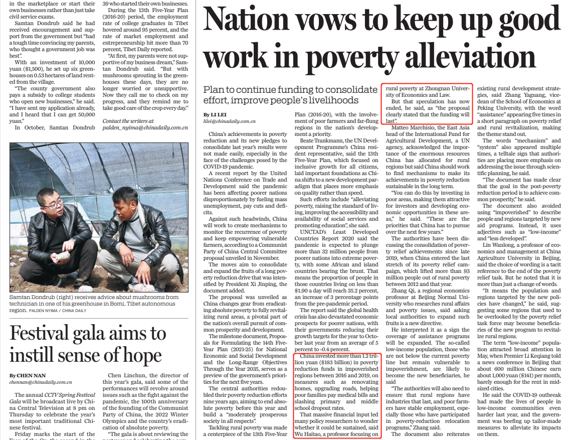 CHINA DAILY 2021年2月8日关于我校吴海涛教授的报道