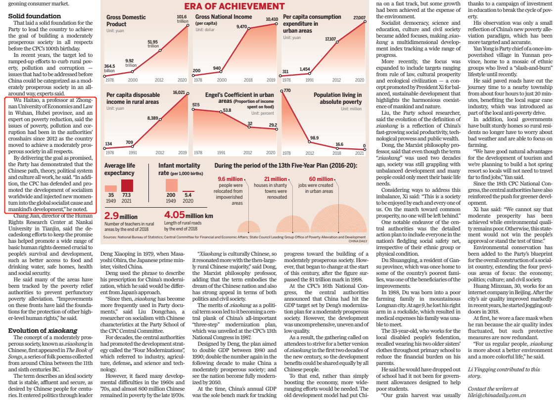 CHINA DAILY 2021年7月2日关于我校吴海涛教授的观点援引